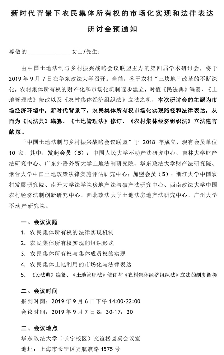 通知下载:新时代背景下农民集体所有权的市场化实现和法律表达研讨会预通知