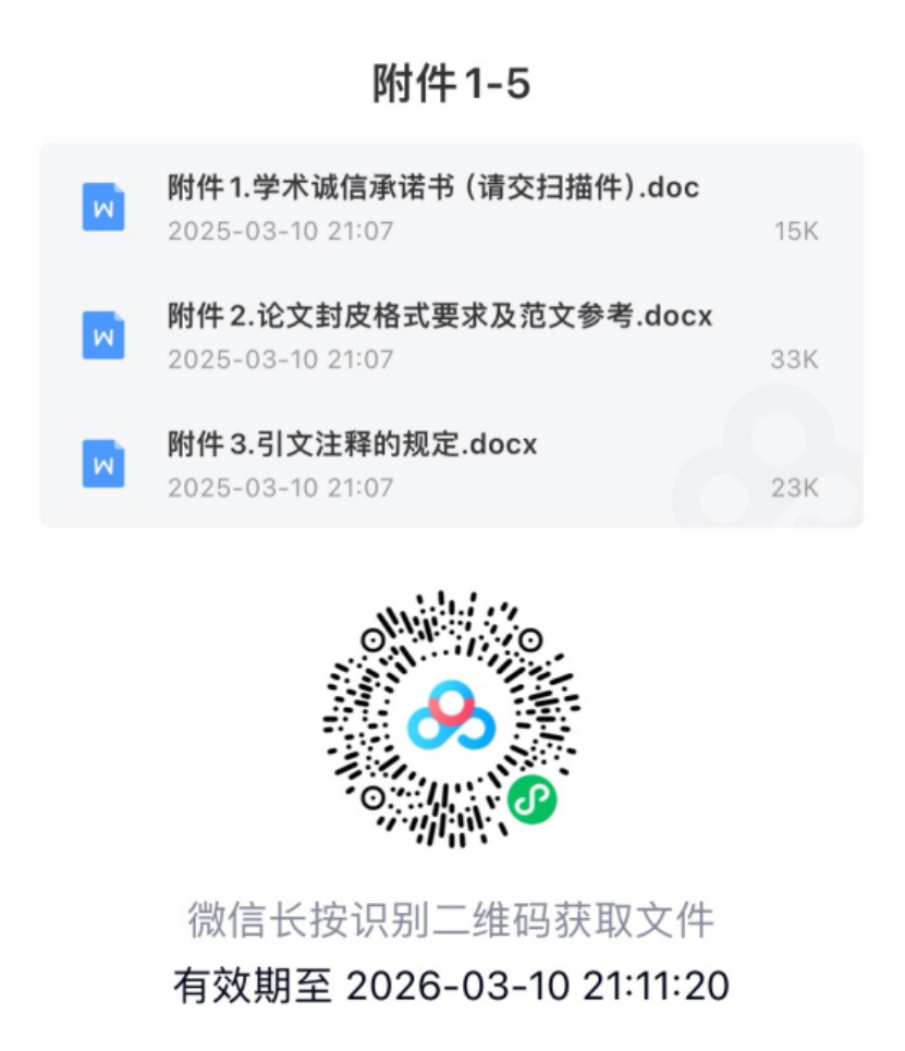请参会同学于2025年3月31日21:00前,提交论文电子版、论文查重报告、学术诚信承诺书(附件1)手签扫描件、报名信息表(附件5)。以上材料于2025年3月31日21:00前提交,发送至: