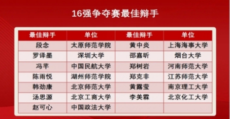 队员们面对有丰富参赛经验的反方对外经济贸易大学代表队思维敏捷、沉着应对,体现了优秀的精神面貌和专业素养。经过激烈的角逐,最终以89.7分比83.8分大比分获胜,得分超越二十余所参赛高校。1/8决赛惜败湘潭大学代表队,荣获集体三等奖。