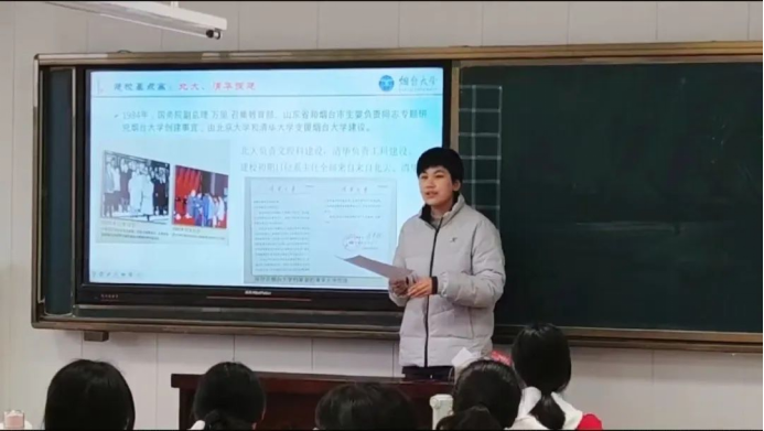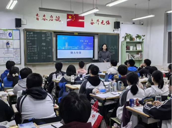 有了基本的了解。随后,宣讲人结合生动的视频图文资料与自己的大学生活经历向大家分享了自己的真实体验,让大家感受烟大浓厚的学术氛围和多彩的校园生活。最后,宣讲团的成员们为同学和老师们送上温暖,并向同学们分发了心愿卡和糖果,她们希望以这种形式来激励奋斗途中的少年们。