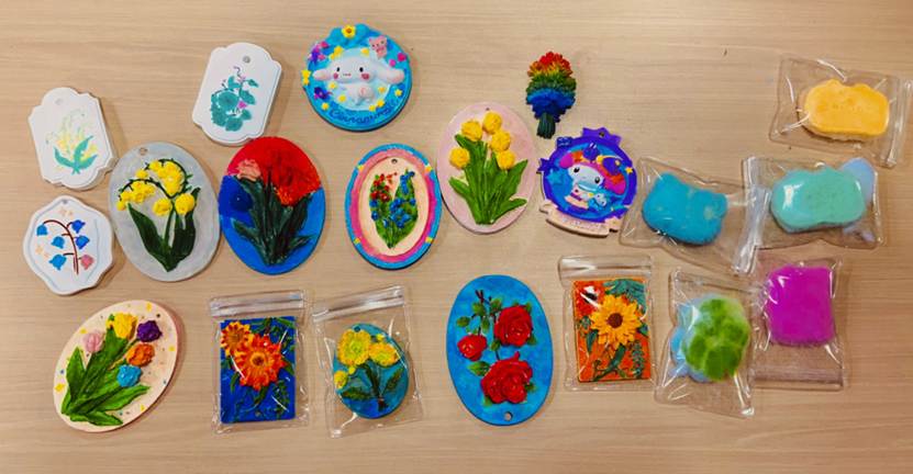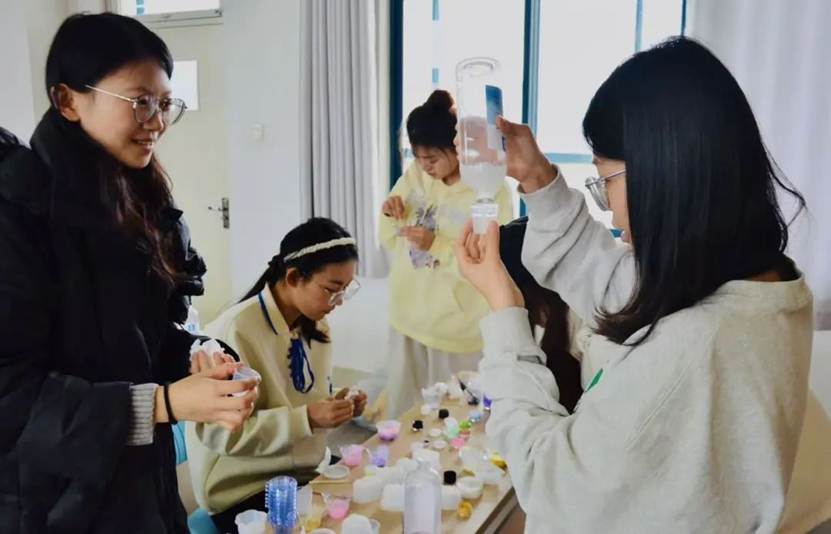 同学们精心挑选石膏娃娃,专注地绘制出独一无二的图案。完成作品后,为手工艺品滴入香薰精油并挂上装饰挂件,使其散发出迷人的香气。同学们在亲手制作的过程中,不仅享受了手工的乐趣,更感受到了生活的美好与宁静。这是一场关于美的探索,也是一次对生活细节的温柔雕琢。它不仅让参与者在创造美的过程中感受到被美包围的幸福,更肯定了她们的自我价值,让她们在春日暖阳中绽放出独特的光芒。