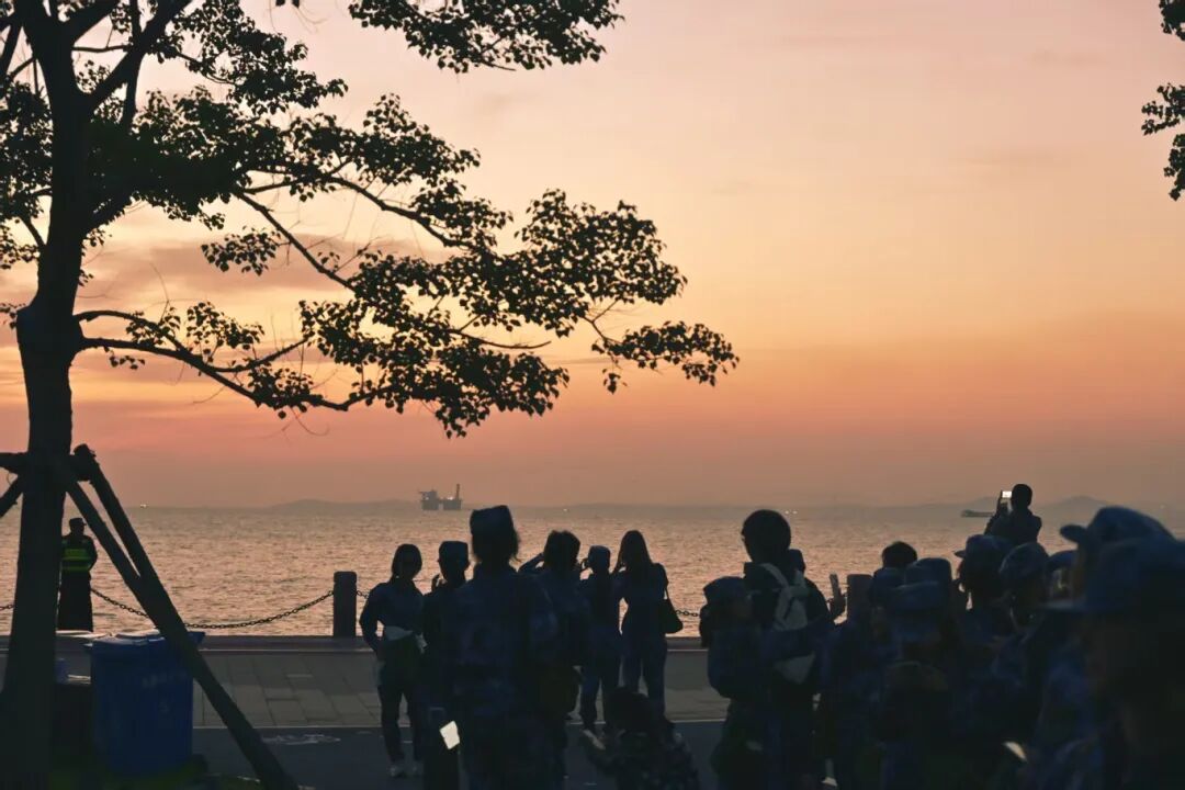 凌晨的风还带着凉意,迷彩队伍的脚步声在寂静里轻轻回响。我们裹紧外套、互相打气,以为拉练只有漫长的路,却在天际泛起微光时,撞见一轮红日慢慢跳出地平线——原来军训的浪漫,藏在早起赶路时的这场不期而遇里。