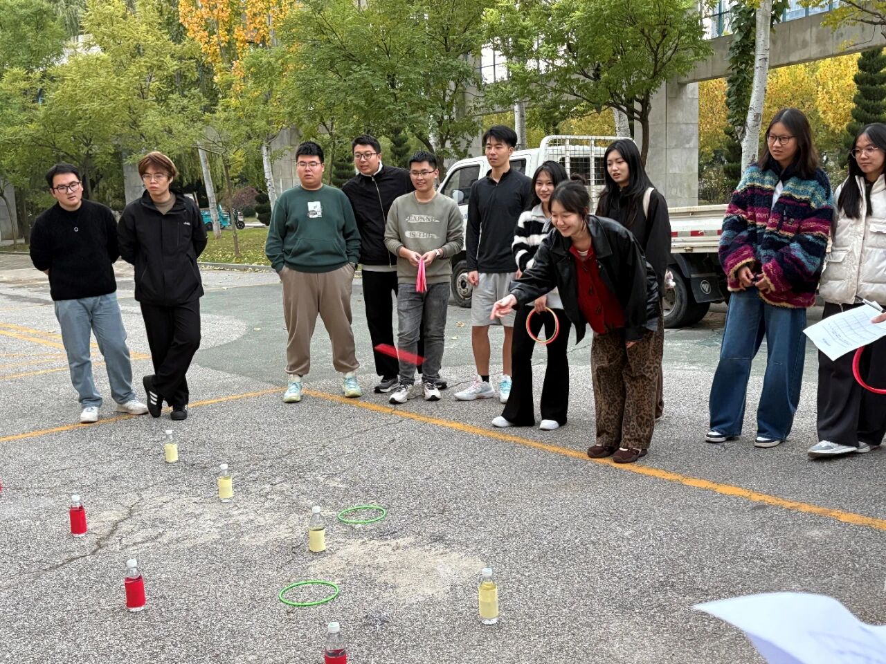 一道优美的弧线划过天空,承载着全队的希望与屏息的期待。赛场上的矿泉水瓶,化身为不同分值的“战略目标”。队员们凝神静气,手腕轻抖,每一次套圈都是技巧与心态的较量。
