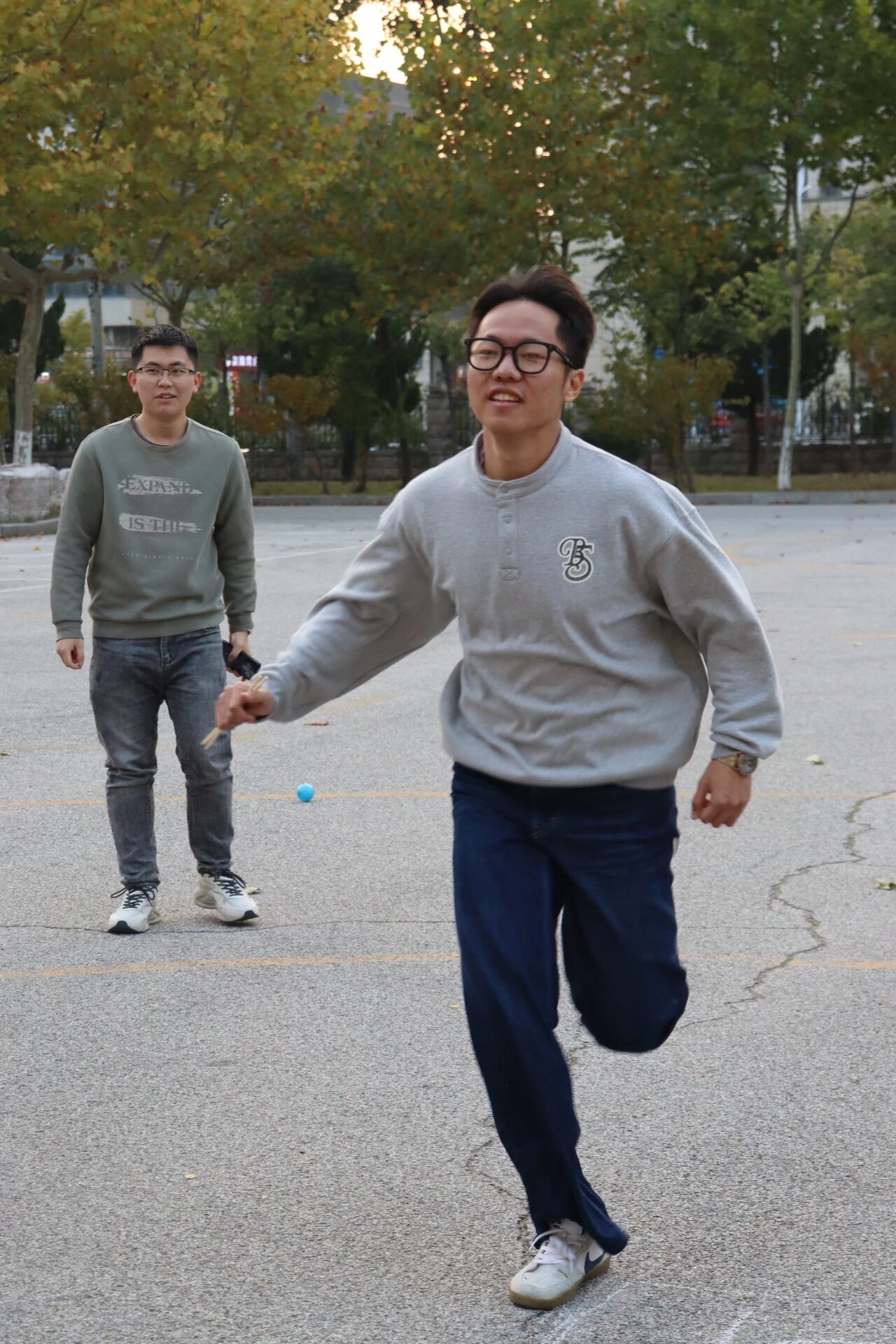 赛场瞬间化身“气球爆破基地”,各小组两人一组,化身横行的“螃蟹”,用额头、后背紧紧夹住气球。裁判发令,他们步履蹒跚却目标坚定,冲向终点。“嘭”的一声脆响不仅是成功的信号,更是引爆全场欢笑的开关!每一次小心翼翼的移动与最终的“英勇一爆”,都将团队协作的乐趣无限放大!