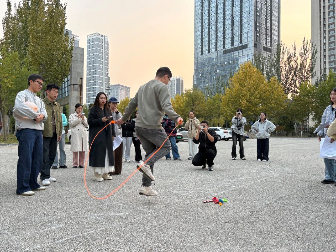 选手们手持跳绳,目光聚焦于地上的格子——每一次摇动铃铛棍,都像开启一次未知的冒险。铃声清脆,步伐紧随,跳入目标格后便要迎接连续跳绳的耐力考验。这不仅是速度的竞赛,更是运气与体能的奇妙碰撞,每一次起落都在节奏中跃动出欢乐的火花!