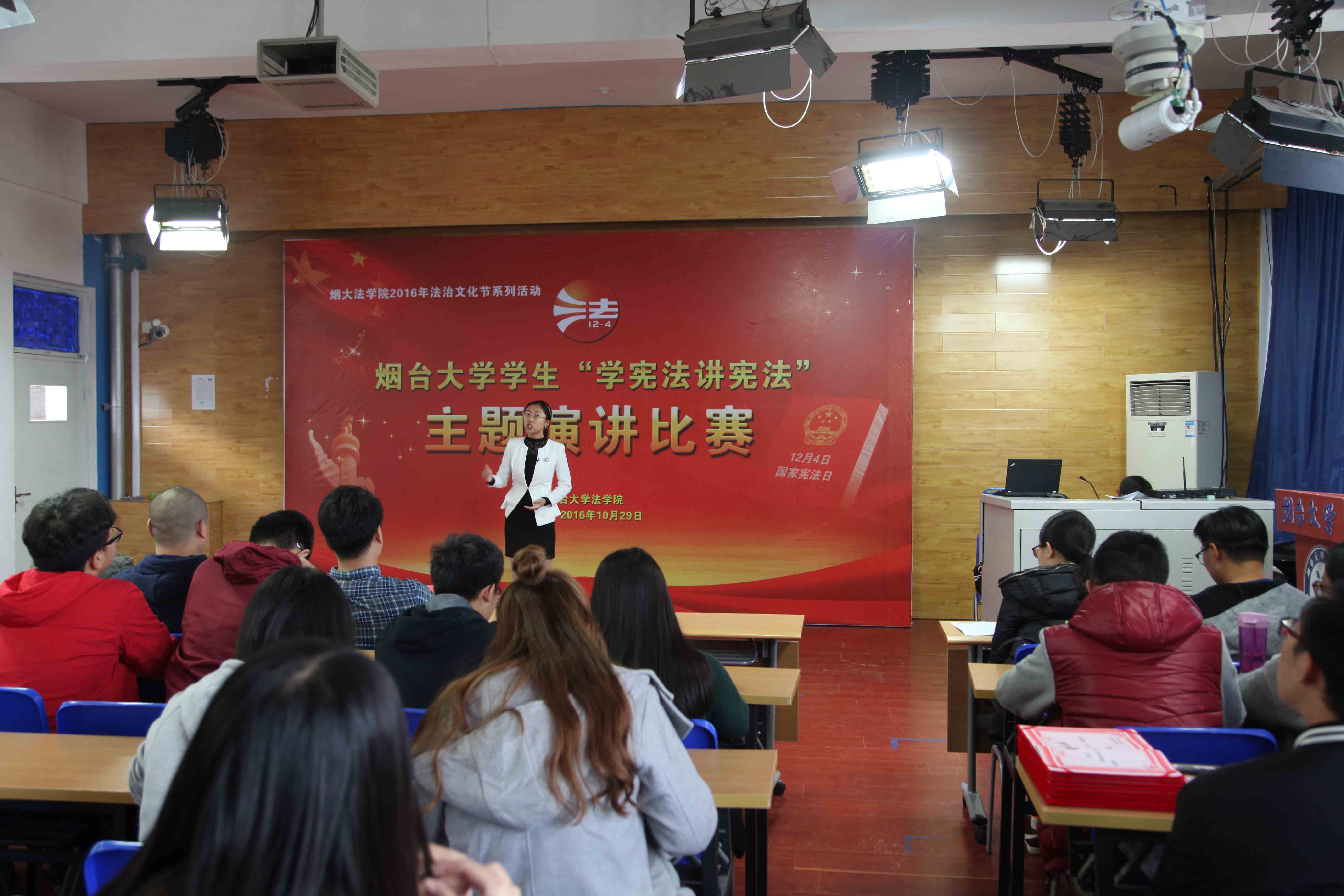 讲宪法故事,论宪法知识,谈宪法精神;弘扬宪法精神,增强法治观念,树立法律权威。将宪法学习与演讲比赛相结合的创新形式,在夯实学生的法律基础知识、锻炼表达能力与思维应变能力的同时,展现了我校青年学子的高素质、优品德的精神风貌。