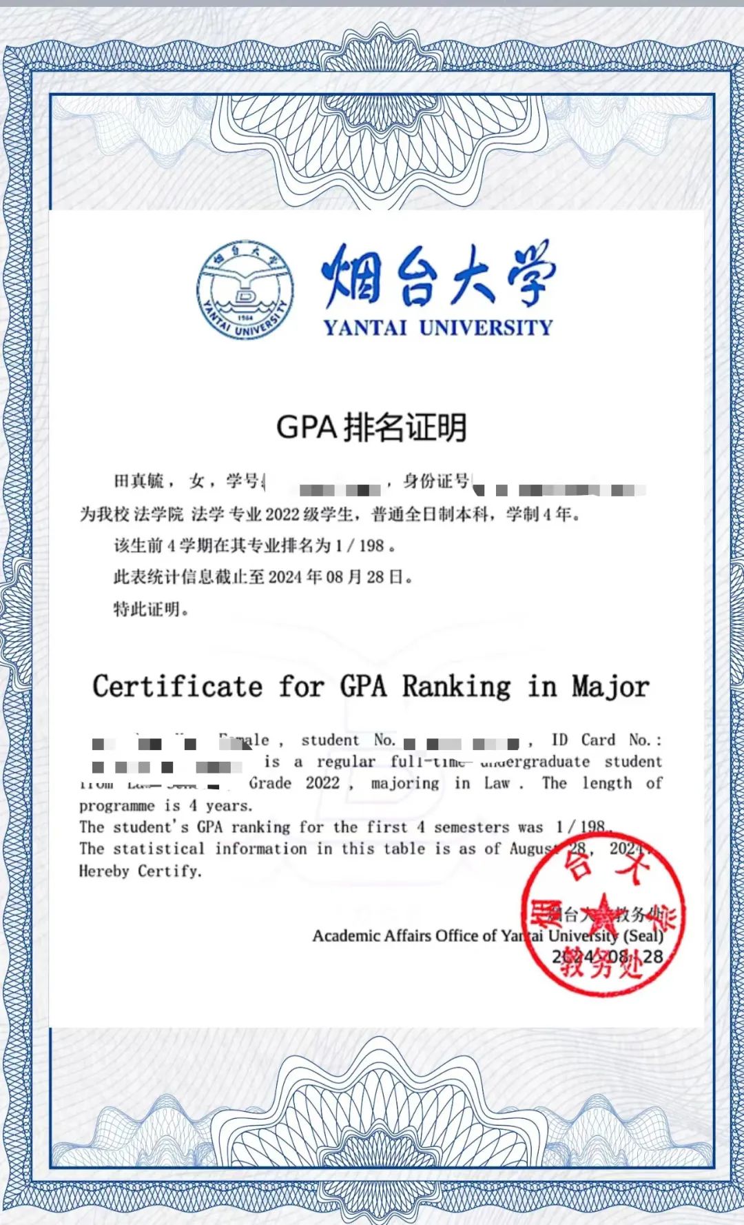这片孕育知识的沃土。响应“学在烟大,赢得未来”的学风建设要求,她学期勤奋刻苦,保持积极的学习态度。在大二学年,加权成绩排名专业第一,综合测评成绩专业第十,前四学期学习成绩居专业榜首。