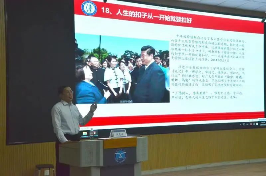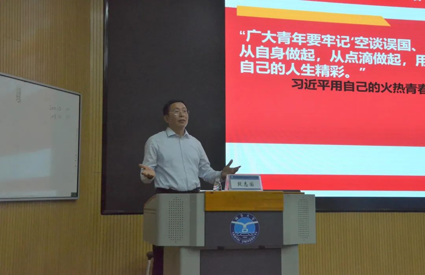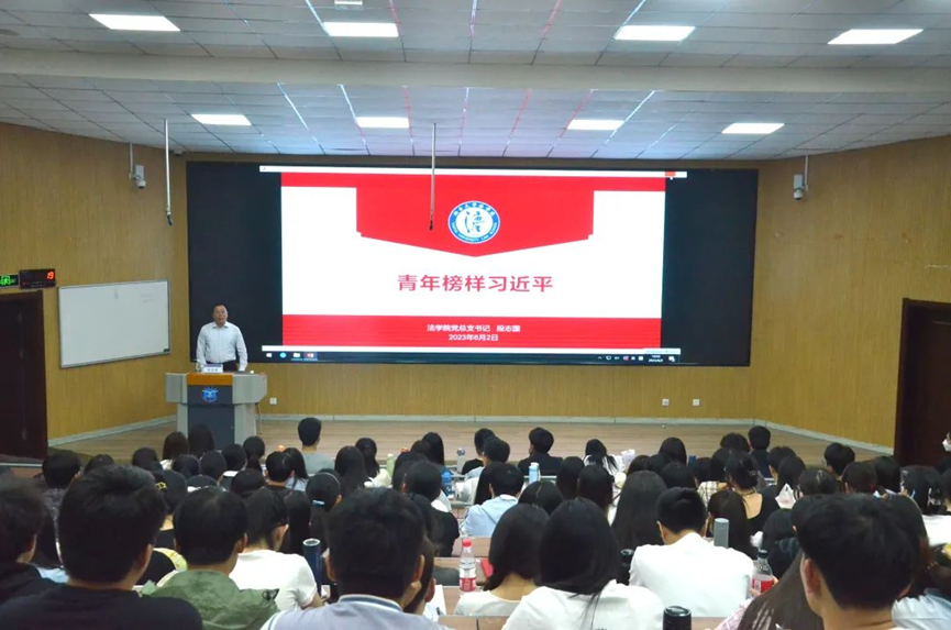 党总支书记段志国以《青年榜样习近平》为主题为2023届毕业生党员和新一批党员发展对象讲授专题党课。