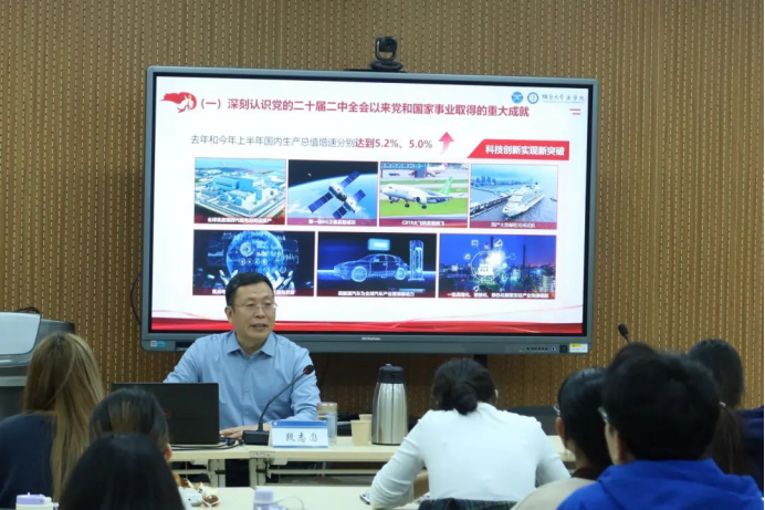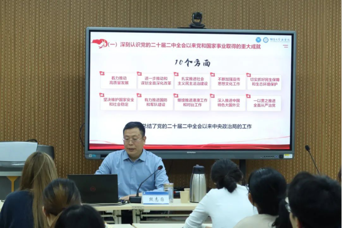 党的二十届三中全会2024年7月15日至18日在北京召开。此会议在以中国式现代化推进强国建设、民族复兴的关键时期召开,是全面深化改革、推进中国式现代化的总动员与总部署。段志国书记以习近平总书记在党的二十届三中全会上的重要讲话精神为切入点,深入浅出地引导学生深刻认识全会以来党和国家事业取得的重大成就,让草榴社区