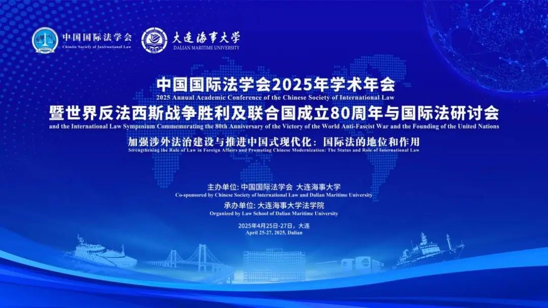 4月25日至27日,中国国际法学会2025年学术年会暨世界反法西斯战争胜利及联合国成立80周年与国际法研讨会在大连举行。本届年会主题为“加强涉外法治建设与推进中国式现代化:国际法的地位和作用”,由中国国际法学会和大连海事大学联合主办、大连海事大学承办。