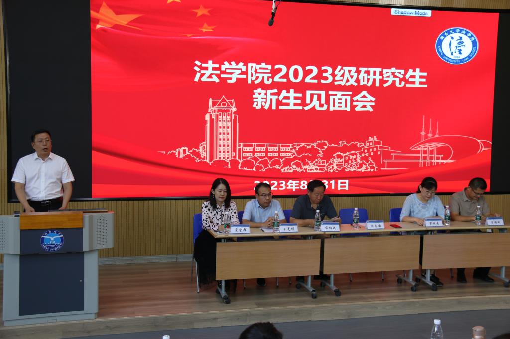 学院党总支书记段志国对新生的到来表示热烈祝贺与欢迎,他谈道,作为一名法学研究生,应当“德法兼修,知行合一”,德是安身之本、法是立业之规、“知”是谋事之基、“行”是干事之要,各位同学要做好筑梦的准备,更要有吃苦的行动、潜心读书的决心以及不断出发的勇气,要珍惜时光,不负青春使命,成为建设国家的栋梁之才。学院院长宋振武从历史沿革、专业发展、师资力量、科研与学科建设成就以及人才培养等进行了全面介绍,并为研究生新同学的学习与工作规划提出了宝贵建议。随后,副院长王光明对研究生培养情况进行了系统介绍,希望研究生同学应在把握专业基础的同时阅读专业经典,应在学术科研上有所突破。