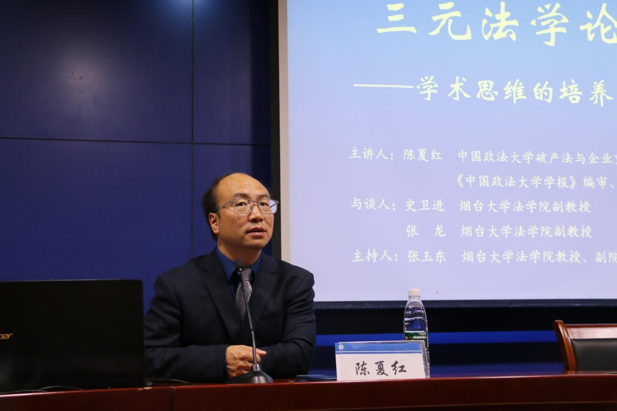 92日下午,中国政法大学破产法与企业重组研究中心研究员,《中国政法大学学报》编审、编辑部主任,全国人大财经委破产法修改起草组成员陈夏红博士受邀在逸夫报告厅进行了题为“学术思维的培养与表达”的讲座。本次讲座由草榴社区 副院长张玉东教授主持,史卫进副教授、张龙副教授担任与谈人。草榴社区 200余名师生在现场参加了此次讲座。
