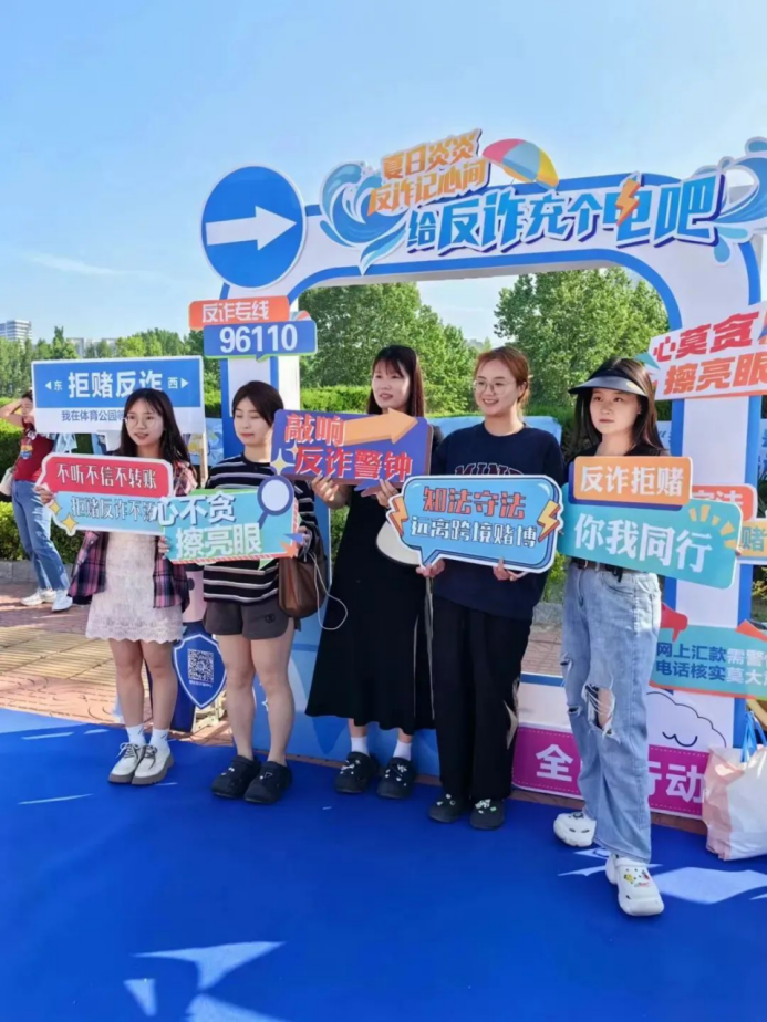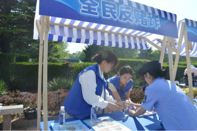 联合烟台市公安局刑侦支队反诈中心、治安支队开展拒赌反诈一体化宣传活动。