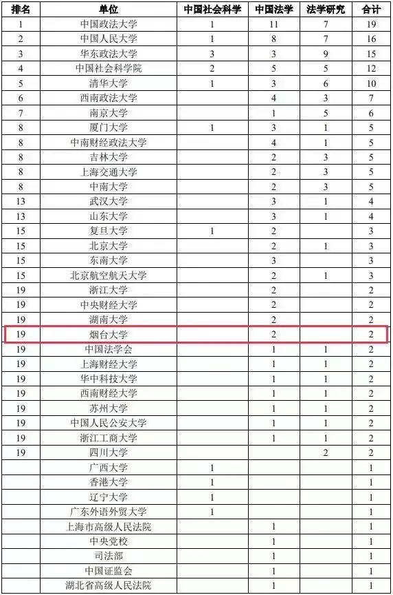 于三大权威期刊发文共计2篇,在全国院校中排名第19。