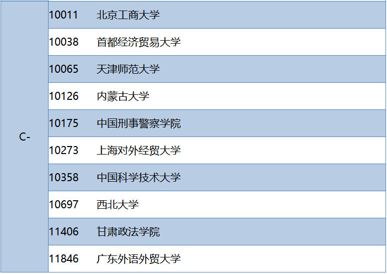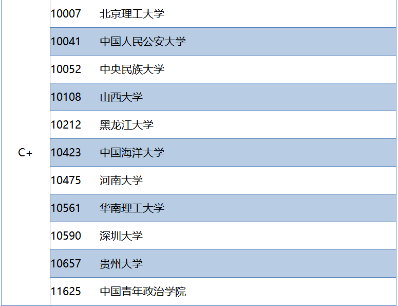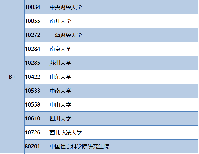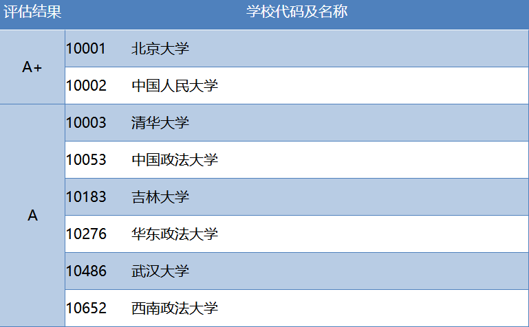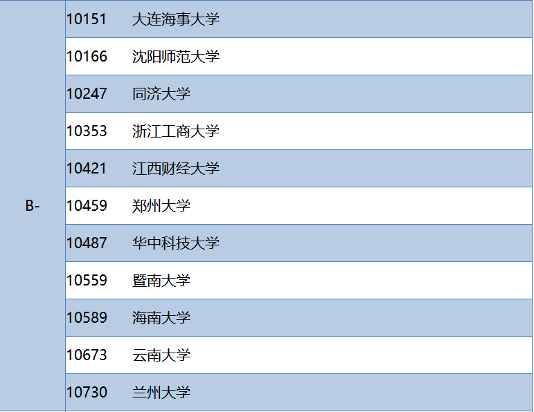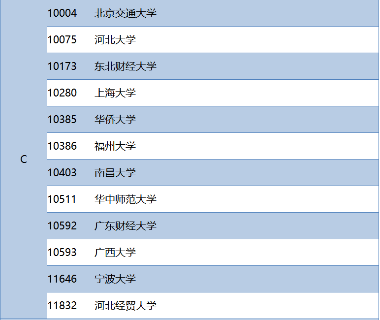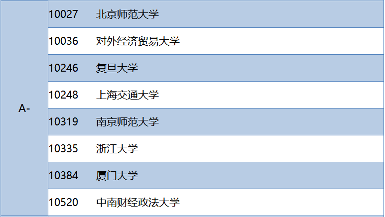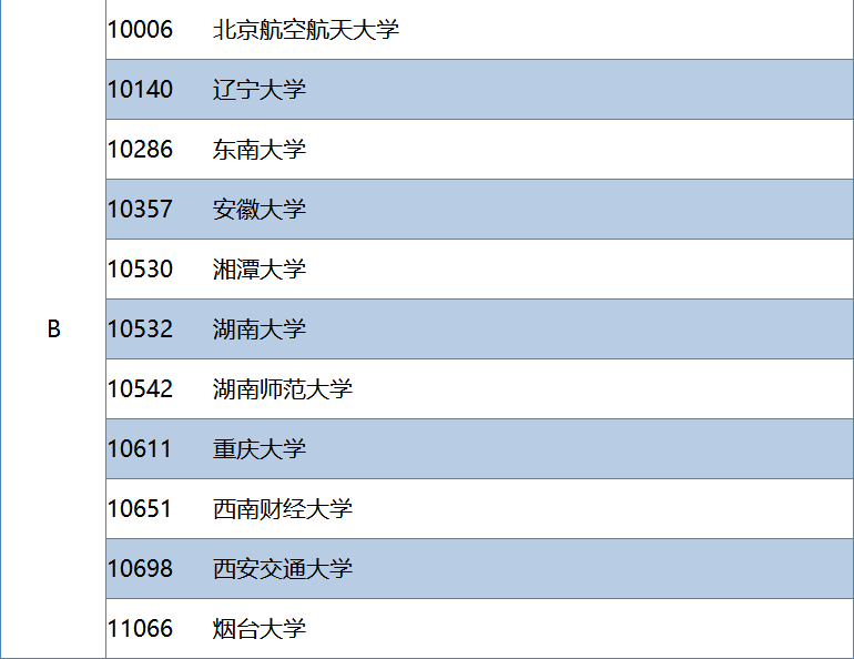 注:以下评估档次相同的学校排序不分先后,按学校代码排列。