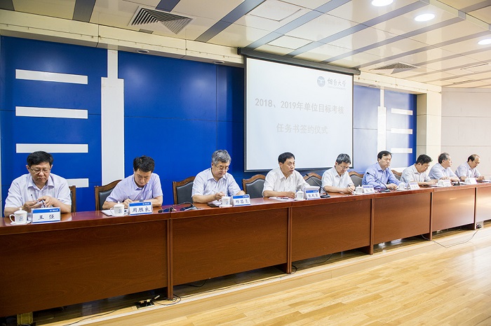 6月15日上午,学校2018、2019单位目标考核责任书签订仪式在逸夫厅举行。校领导张伟、郭善利、张殿臣、孙祥斌、邓昌亮、宋中民、周胜良、郝曙光、王强出席会议,全校副处级以上干部以及各教学单位教学秘书、科研秘书、研究生秘书、团委书记等参加会议。会议由党委副书记张殿臣主持。张殿臣通报了2016、2017年单位目标考核结果,草榴社区