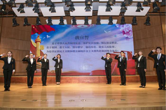 草榴社区 “谠言直声”宪法宣讲团开讲 4月25日晚,草榴社区 “谠言直声”宪法宣讲团首场宣讲报告会在韶乐厅举行。山东省教育厅政策法规处副处长夏贞鹏,山东省司法厅普法与依法治理处副处长李传华,山东省教育厅政策法规处副处长宋立平,草榴社区 党委常委、副校长郝曙光,党委宣传部、党委学工部,草榴社区 党总支书记张仕祯,副院长刘经靖以及学院老师与三百位师生代表一同参加了本次活动。 宣讲团成员从不同的角度分别阐述了自己对宪法的理解,将白纸黑字和冰冷条文转化为充满激情的演讲、充满逻辑的说理、充满幽默的解读、充满士气的宣言。宣讲团成员刘畅同学以宪法历史为载体,以私有经济的发展变革为主线,描绘了一幅波澜壮阔的宪法历史画卷;赵文华同学的讲述,让同学们真切感受到宪法并不遥远,宪法就在我们心中;于东民同学从宪法的义务方面,向同学们介绍了我国的服兵役制度,阐发了青年热血、家国情怀;陈禹洲、邢恩昊两位同学用新闻播报的形式,寓教于乐,风趣幽默地梳理了宪法内容,博得阵阵掌声;刘一霏同学把握住受教育权这一宪法权利,层层递进,让同学们感受到受教育权神圣不可侵犯;臧曼亦、苑鹏宇等同学的朗诵声情并茂、发人深省;最后,杜秋雨同学以“守护公民权利,树立宪法威严”为题,呼吁与时代同频,更要与时代共振,法制中国的路,我们一起走!最后,“谠言直声”宪法宣讲团团长倪鹏与宣讲团全体同学上台,带领全场进行了庄严的宪法宣誓,为本次宣讲会画上了一个圆满的句号。 为深入学习贯彻习近平新时代中国特色社会主义思想和党的十九大精神,推进社会主义法治国家建设,积极落实“七五”普法规划中“突出学习宣传宪法”的主要任务,根据《山东省教育厅关于印发〈全省教育系统宪法学习宣传和贯彻实施方案〉的通知》精神,校党委宣传部、党委学工部和校团委以草榴社区 为依托,于2018年12月4日(第五个国家宪法日)当天正式成立了草榴社区 “谠言直声”宪法宣讲团(以下简称“宣讲团”)。目前宣讲团共有团员10人(均为草榴社区 本科学生),其中2人为第三届全国“学宪法、讲宪法”比赛个人赛亚军和团体赛二等奖获得者,其余团员均到全国赛现场观摩,专业功底扎实;并专门聘请了草榴社区 宪法学专业老师担任宣讲团指导教师,专业实力雄厚。 宣讲团采用“学生讲给学生听”的理论宣讲的生动形式,坚持从学生中来,到学生中去,宣讲内容既有理论高度,又有现实意义,是探索创新高校思想政治工作方式的一次有益尝试。宪法不只高高在上,也应深入人间;宪法不仅刚性威严,也应人性慈爱。宪法不能束之高阁,需要掷地有“声”。