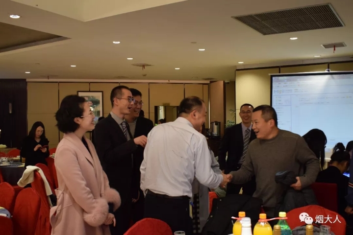 为了这次相聚,新老校友齐心协力,用了很多心思、做了很多事情。95级姜林和03级刘永涛一起出谋划策,操办了菜肴酒水。会场入口的幕布上,放映着韩秀艳和王铭凯精心制作的PPT,里面展现了烟大的昨天与今天。8张桌子,新老校友们坐得满满当当。平日里,校友们或忙于工作家庭,或忙于进修学业。是这次相聚,让许多校友,有机会再一次相见、有机会第一次相识。