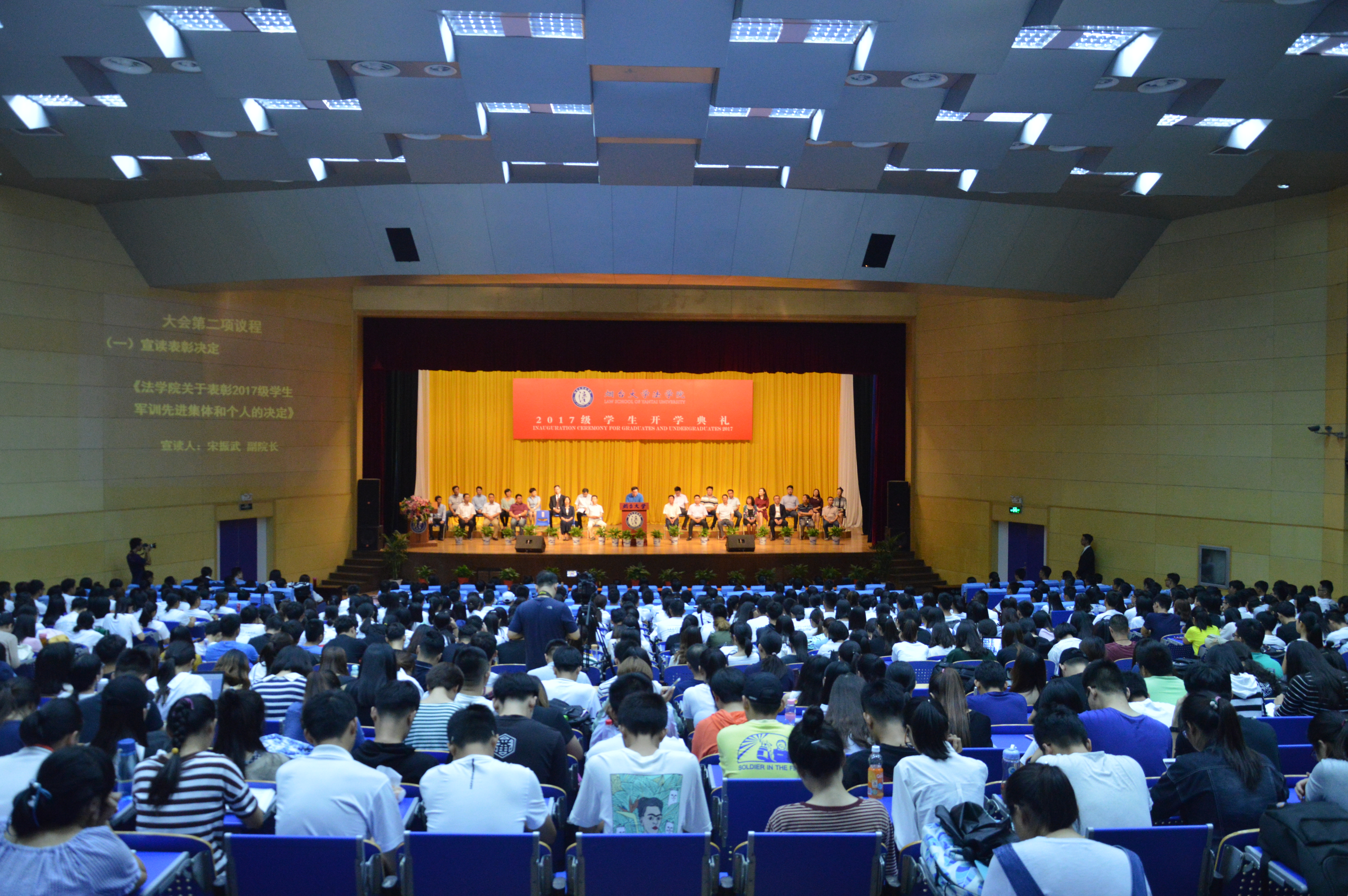 首先,草榴社区 副院长宋振武宣读了《草榴社区 关于表彰奖励2017级学生军训先进集体和个人的决定》,对2017级新生军训期间涌现出来的先进典型进行了总结表彰,充分肯定了学院在此次新生军训中取得的“草榴社区 2017级学生军训先进学院”、“草榴社区 2017级学生军训歌咏比赛优胜学院”等优异成绩,鼓励全体新生继续发扬军训期间养成的优良作风,争做卓越法律人。