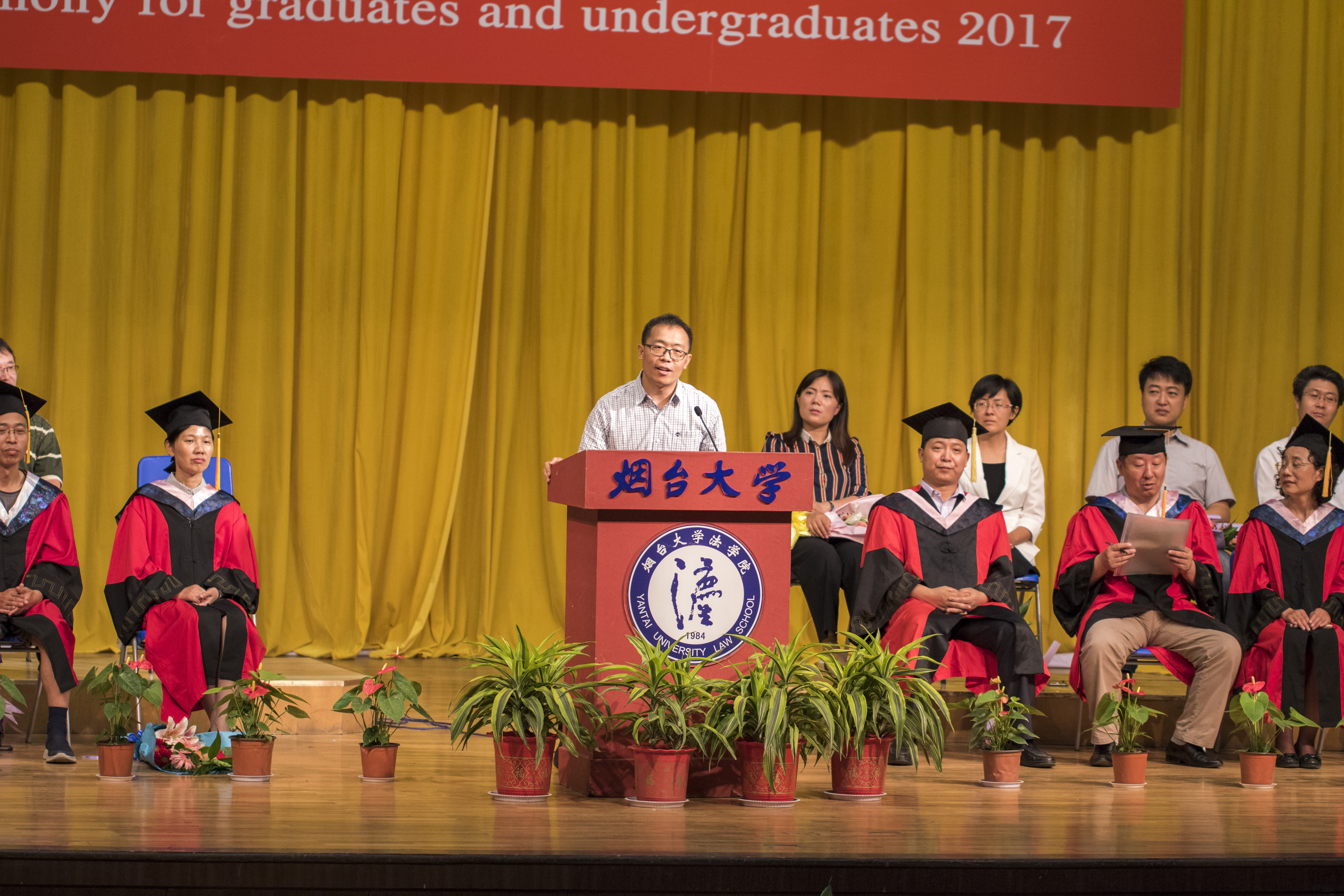 草榴社区 举行2017届学生毕业典礼暨学士学位授予仪式 6月22日上午,草榴社区 2017届学生毕业典礼暨学士学位授予仪式于弘毅厅隆重举行。草榴社区 党政领导班子成员、草榴社区 分学位委员会委员、毕业班班级导师、辅导员、教辅老师、校友代表、毕业生家长、在校生代表等共同参加了本次典礼。草榴社区 党总支副书记亓健生主持毕业典礼,2017届341名本科毕业生、139名硕士毕业生郑重告别母校,携手共展未来。 毕业典礼上,草榴社区 副院长宋振武和院长助理杨利军分别宣读《草榴社区 关于表彰2017届优秀毕业生的决定》、《草榴社区 关于表彰2017年基层就业先进个人的决定》、《草榴社区 关于颁发2017年升学奖学金的决定》、《草榴社区 关于颁发2017年 “思源”德和衡优秀毕业生奖学金的决定》、《草榴社区 关于颁发2017年“思源·星权律师”职业奖学金的决定》共六项表彰决定。草榴社区 党总支书记范李瑛、草榴社区 院长张平华分别为获奖同学颁奖。 作为草榴社区 的一项传统活动,由草榴社区 全体本科毕业生参与票选的“草榴社区 2017届本科毕业生最喜爱的五位教师”结果在典礼现场揭晓,本科毕业生代表向张玉东、马丽丽、黄伟明、初炳东、关涛五位获奖教师送上了奖杯和鲜花,为老师们献上最真挚的感谢与祝福。 校友代表、草榴社区 97届法学专业本科毕业生、山东大学草榴社区 副教授、美国康奈尔大学草榴社区 博士后江照信向全体毕业生分享了自己毕业20年的感悟。他表示,正是烟大草榴社区 四年优质的本科教育经历,激励着他在毕业以后的求学、工作之路上中勇敢追求自己的梦想,身为烟大法律人的精神激励着每一位草榴社区 毕业生勇于追求、勇于探索、勇于实践。他鼓励2017届全体毕业生继续传承烟大法律人应有的精神,书写自己的人生,做最成功的自己,做合格的烟大法律人。
