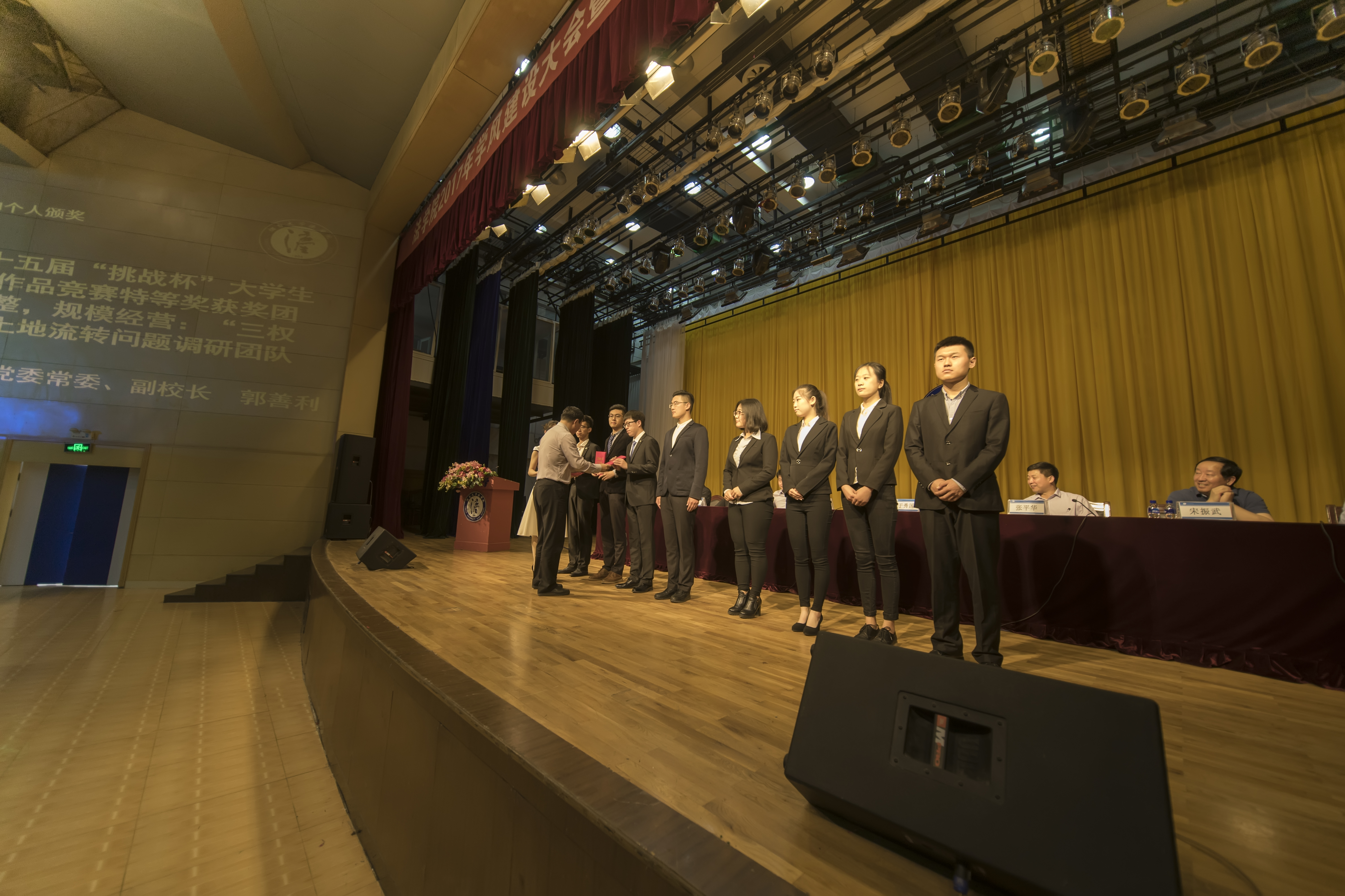 接下来,对荣获山东省第十五届“挑战杯”大学生课外学术科技作品竞赛特等奖、一等奖的获奖作品作者团队、2017年“山东高校十大优秀学生”获奖者法131-1班王振宇,以及荣获2016年“全国高校活力团支部”、2016年度山东省先进班集体、荣获校级荣誉的12个班团集体进行了表彰奖励。并对2016年度草榴社区 优秀宿舍,2017年春季运动会表现突出个人和团体、草榴社区 “升腾杯”学术科技作品竞赛优秀作品等先进集体和个人进行了表彰奖励。随后开展了“思源”专项奖学金颁发仪式,学院从32项申报项目中,经过评审,对在大学生创业、学科竞赛、科研创新、社会实践和志愿服务等领域做出突出成绩的17个团队或个人进行了表彰,并发放了总额达39500元人民币的奖励。