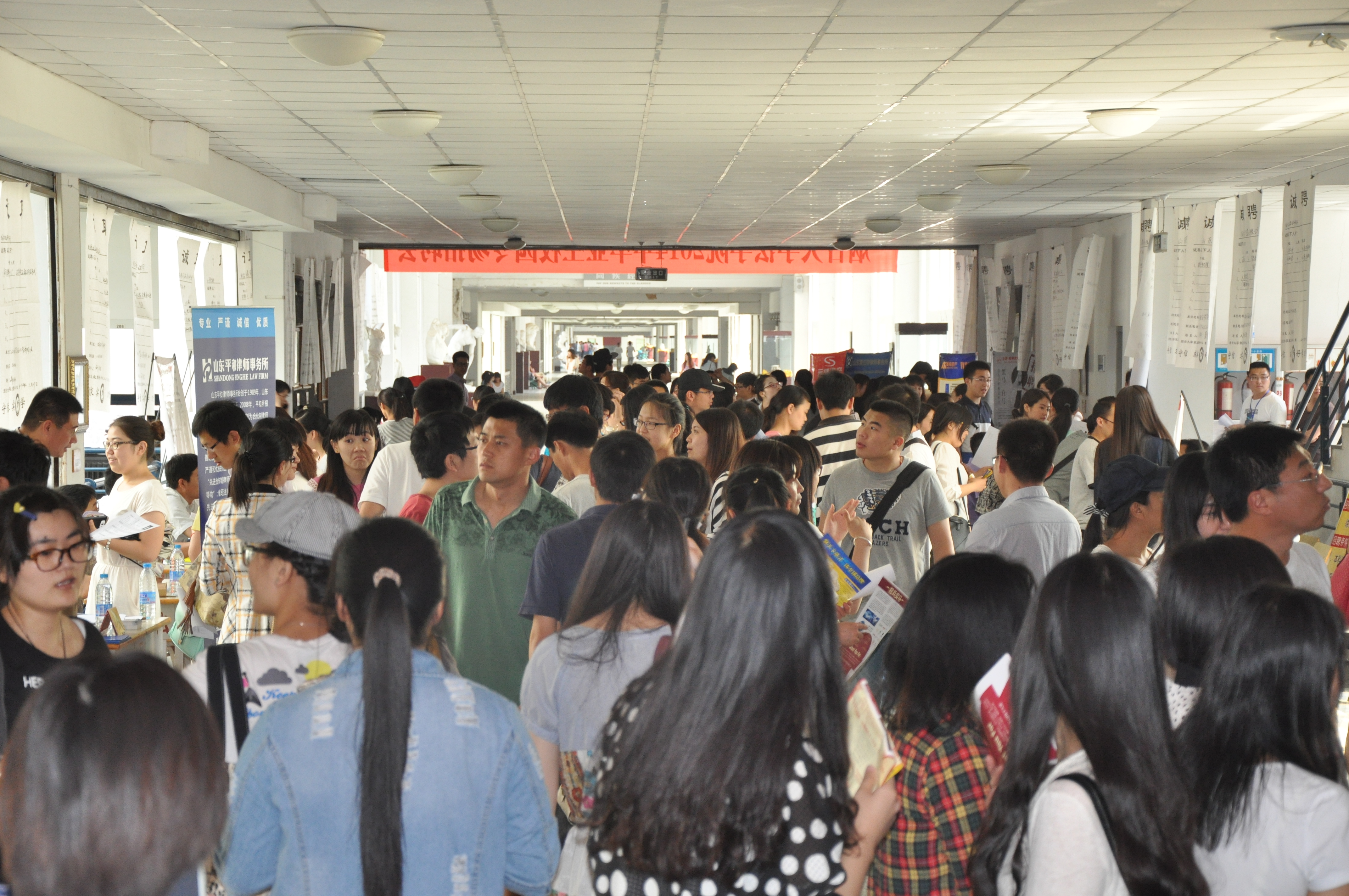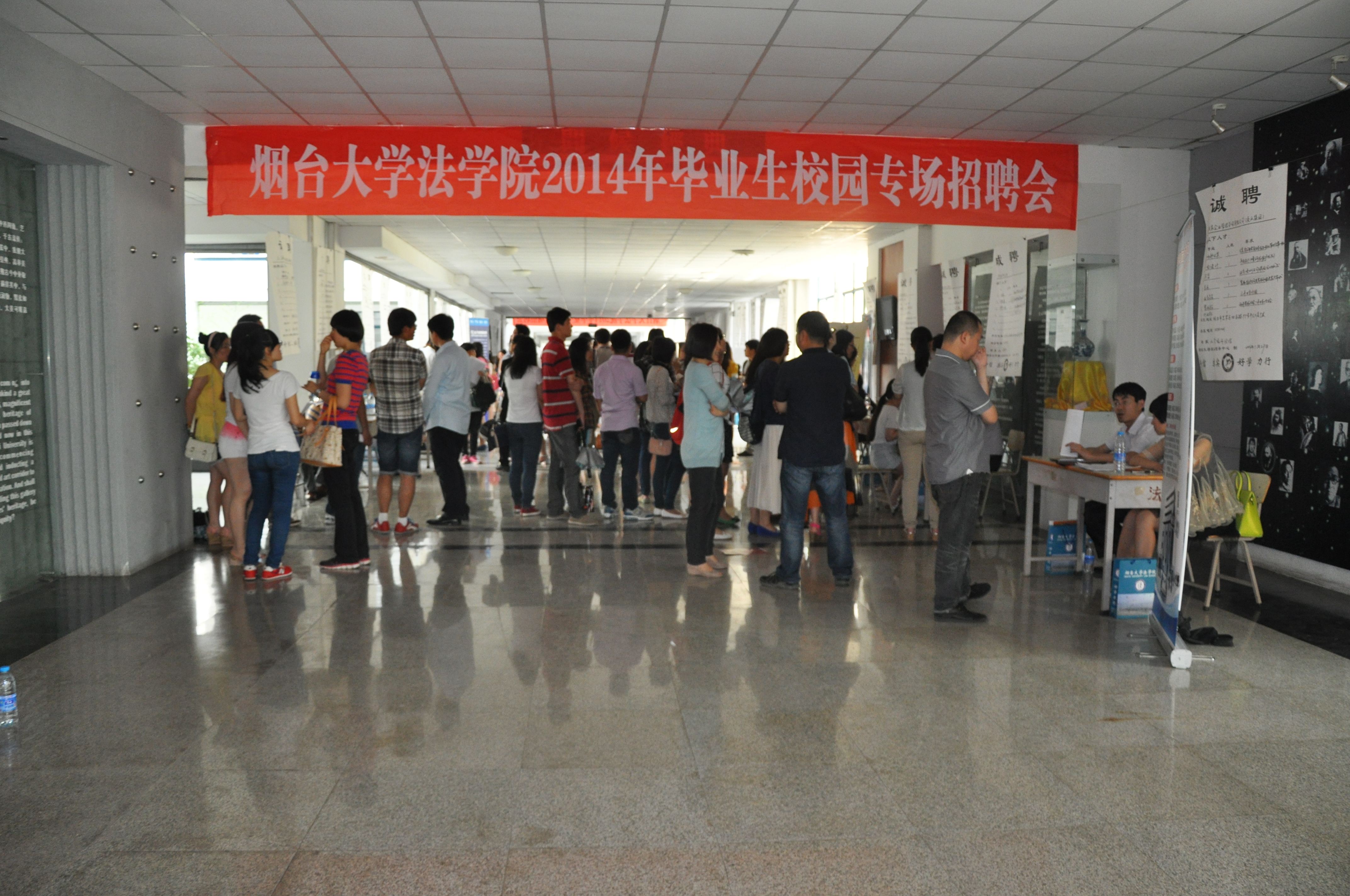 精彩职涯,扬帆今朝。为鼓励学生把握就业机会,给毕业生提供良好的择业平台,实现用人单位和学生的无缝对接,5月29日,草榴社区 在千米文化长廊举办了“草榴社区 2014届毕业生校园专场招聘会”,来自我校草榴社区 本科及研究生毕业生踊跃参会,部分驻烟兄弟院校法学类专业毕业生也慕名前来参会。