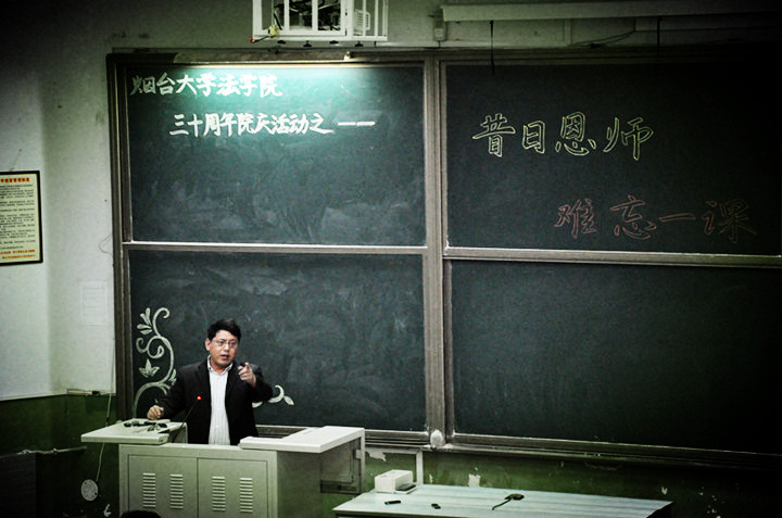 和汪建成老师充满激情的授课风格不同,第二位出场的曾在烟大法律系主授民法课程、现在东北财经大学草榴社区 任教的於向平老师显得淡然和从容。娓娓重忆烟大时光,渐渐寻找当年感觉,於老师选的“法人”这个课题很简单,但想表达的内容是那么深沉,他赞赏烟大草榴社区 传承北大、清华的精神内涵,他推崇法律人的正直公正之心,他坚守良心的底线和道德的本色,在他揭秘的事例中,他赢得了场下不绝的掌声。