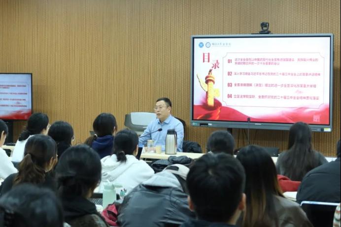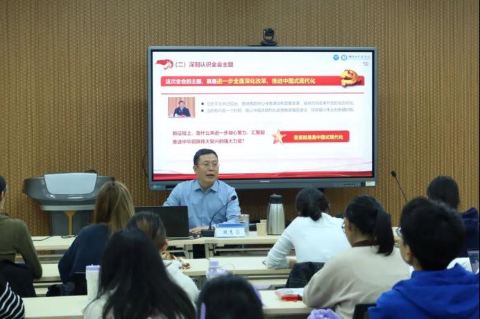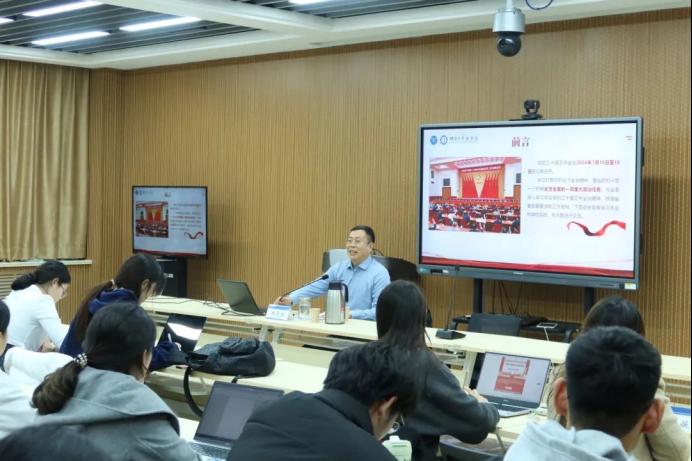 党的二十届三中全会2024年7月15日至18日在北京召开。此会议在以中国式现代化推进强国建设、民族复兴的关键时期召开,是全面深化改革、推进中国式现代化的总动员与总部署。段志国书记以习近平总书记在党的二十届三中全会上的重要讲话精神为切入点,深入浅出地引导学生深刻认识全会以来党和国家事业取得的重大成就,让草榴社区