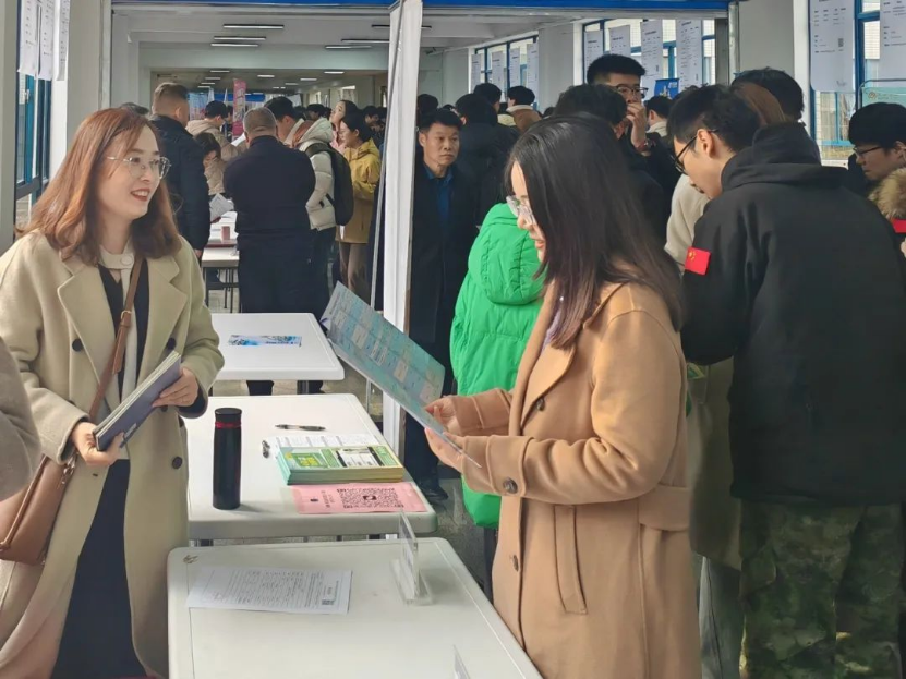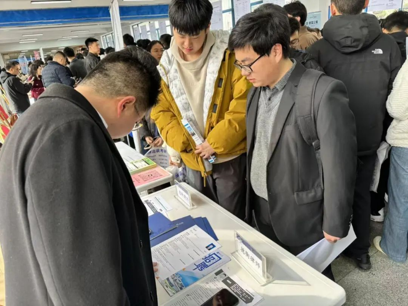 招聘会现场气氛热烈,学院2025届毕业生积极与企业HR交流,了解企业发展背景、岗位工作内容、职业成长路径等信息,适应就业形势,寻求机会,并踊跃投递简历。