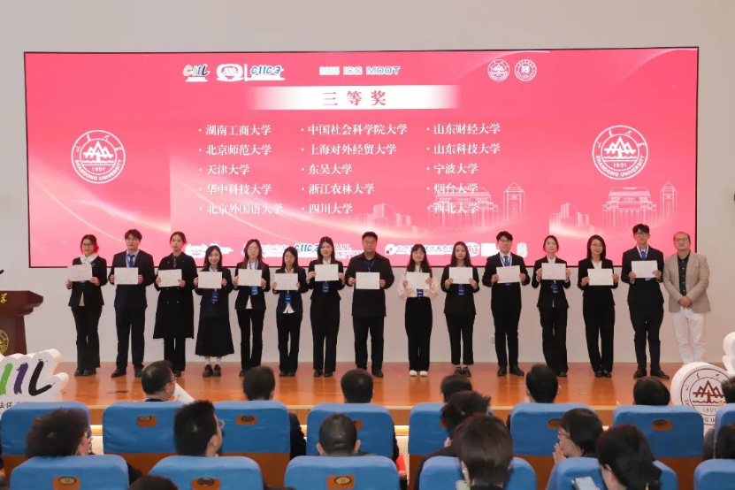代表队以宋振武院长、王圣礼副教授为顾问,以毛海利老师为教练,以谢智栩、汤佳新浩、桑文欣、林婧、冷艳为中文赛正式队员。队员们在指导教师的悉心指导下,深入研究竞赛案例,广泛查阅国际刑法、国际人道法等相关领域的资料,精心撰写法律文书,并进行了多次模拟庭审演练。在比赛中,队员们凭借清晰的法律逻辑、精准的事实分析和出色的临场应变能力,在与其他高校强队的交锋中脱颖而出,最终斩获团体三等奖。