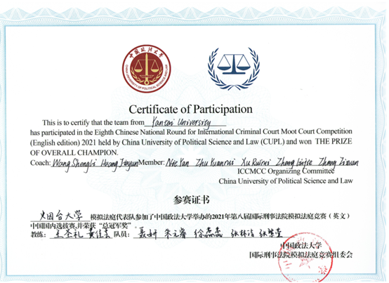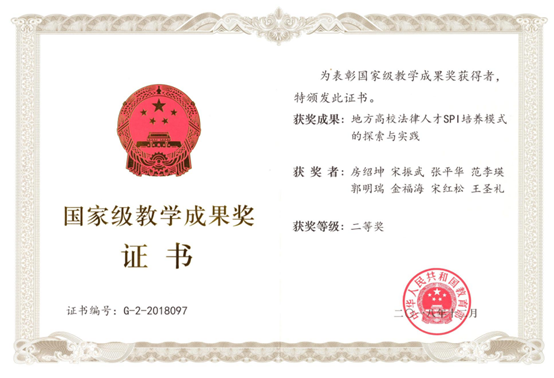 学生获“挑战杯”竞赛国家级二等奖、国际刑事法院模拟法庭比赛全国总冠军等重要学科竞赛奖项。