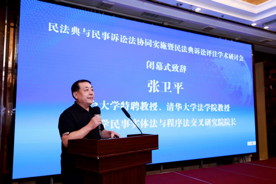民事实体法与程序法交叉研究院院长张卫平教授出席闭幕式并致辞,祝贺本次学术研讨会圆满成功!