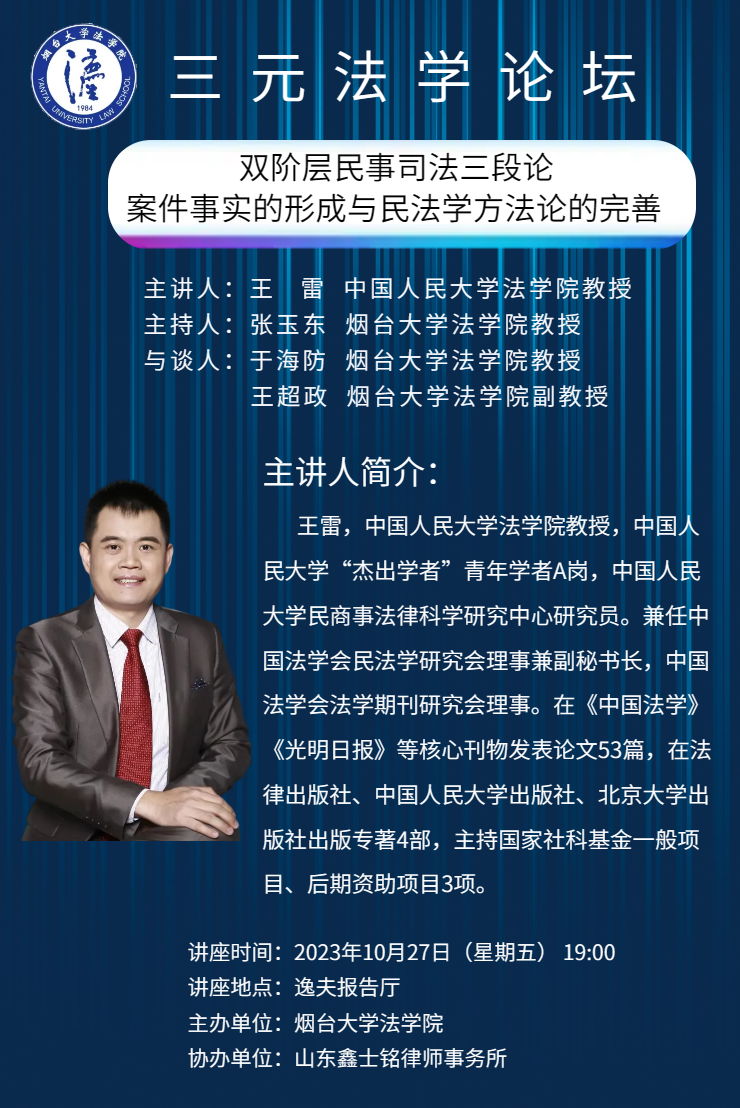 【讲座预告】双阶层民事司法三段论 案件事实的形成与民法学方法论的完善