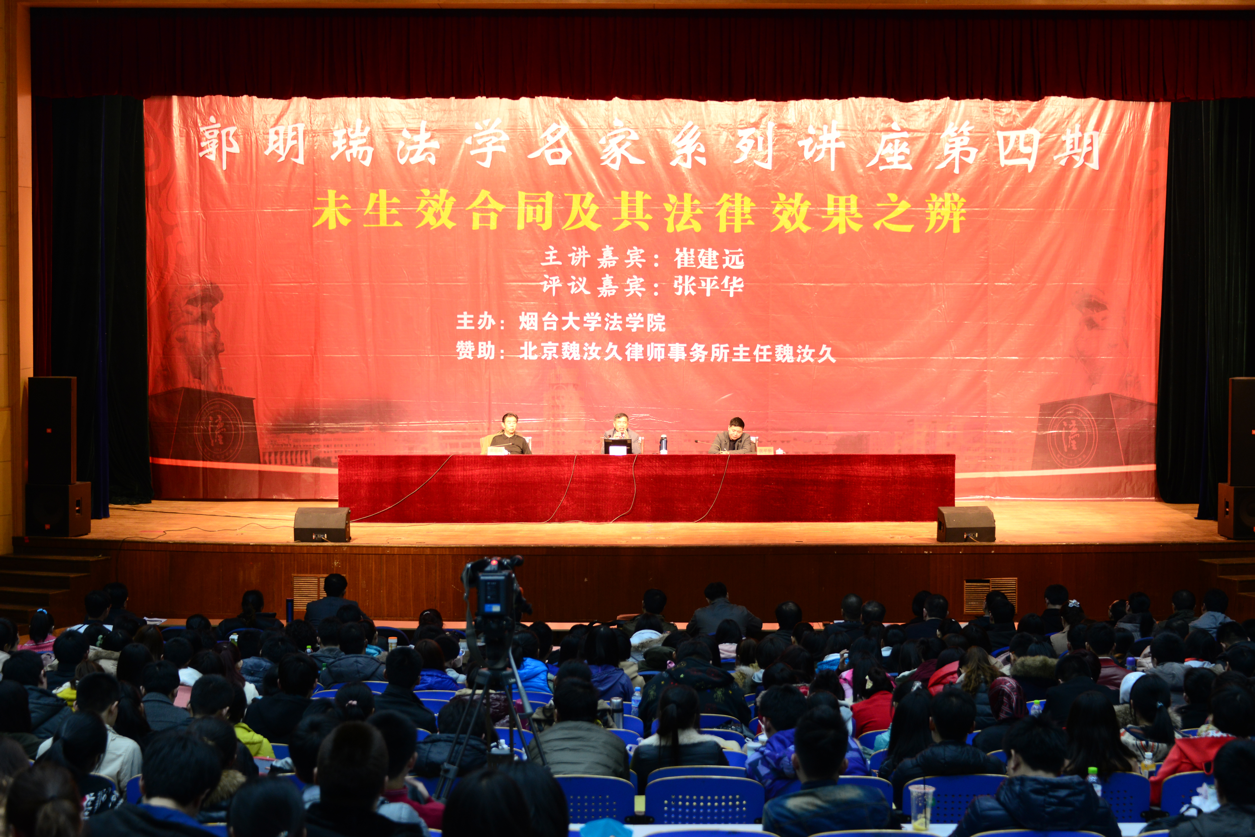 2013年3月6日晚,清华大学草榴社区 教授、著名民法学家、《物权法》立法专家委员会成员、“长江学者”、博士生导师崔建远应草榴社区 邀请,做客郭明瑞法学名家系列讲座暨草榴社区 两校名师讲堂第167期,解析《未生效合同及其法律效果之辨》。山东省知识产权研究院院长、博士生导师郭明瑞教授、草榴社区 副院长张平华教授到场评议。我校师生近600余人到场聆听该场讲座。