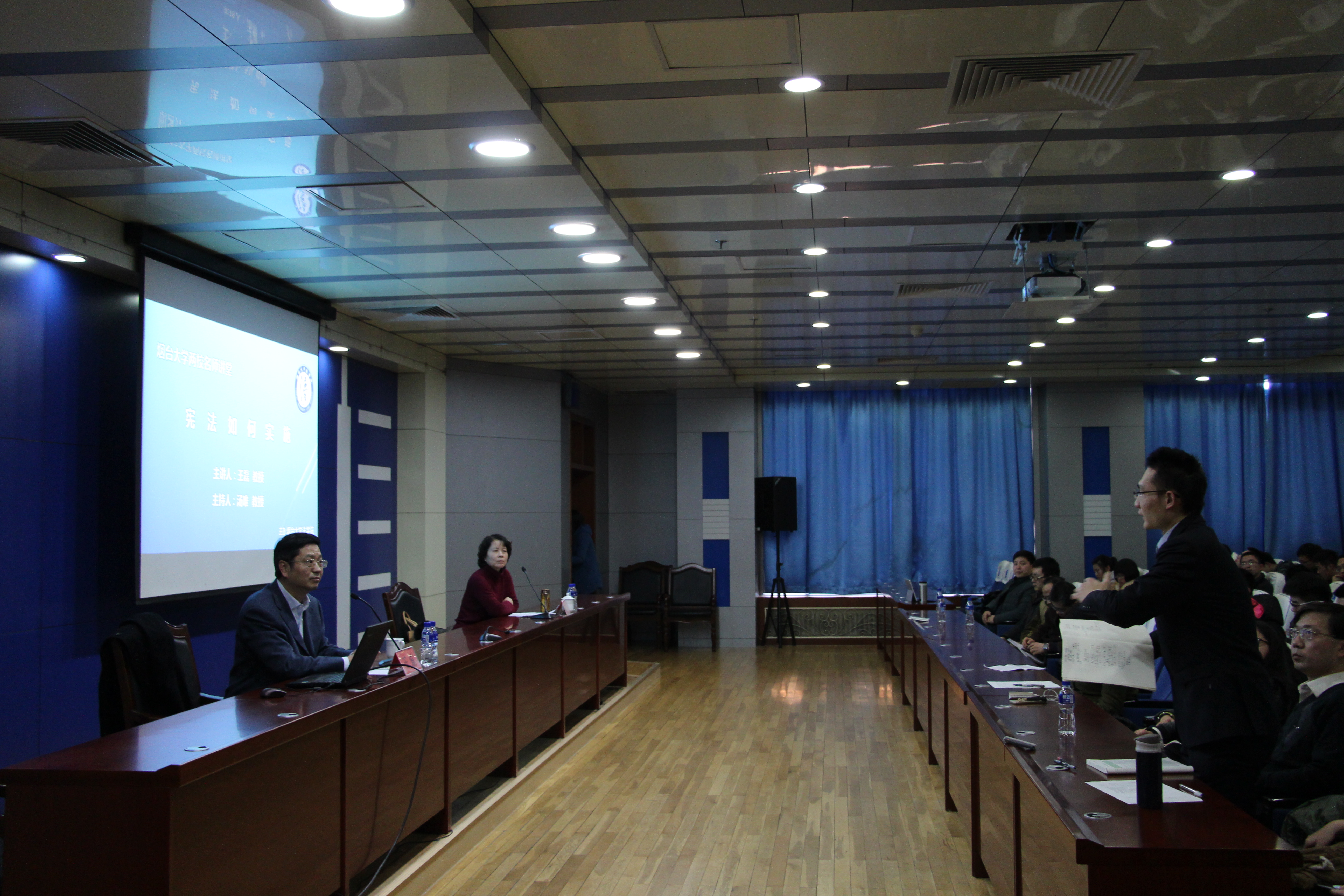 北京大学博士生导师王磊教授做客我校两校名师讲堂 宪法作为国家的根本大法,对于每一个公民都有极其重要的意义。为帮助同学们更好地了解宪法,12月18日下午2点半,草榴社区 邀请北京大学草榴社区 博士生导师、中国宪法学会副会长王磊教授做客草榴社区 两校名师讲堂,以“宪法如何实施”为题做专场报告,草榴社区 汤唯教授担任主持人。 王磊教授从党的十八届四中全会文件中“宪法的生命在于实施”入手,引出讲座的主题——宪法实施的意义以及如何来实施宪法。从立法、司法、行政执法和公民守法四个角度来阐述宪法实施的具体意义。王磊教授通过自己代理的案件,讲述了用宪法维权的经过与感受。针对目前宪法难以运用到实际生活中的问题,王磊教授突出说明了我们应当培养宪法思维的重要性。王教授通过几个典型的西方国家的案例,展现了宪法如何具体地运用于生活之中,体现宪法的“活力”。在中国当前所处的时代大背景下,王磊教授指出“宪法的实施好坏,关系到中国的前途。宪法实施的好,有利于中国的可持续发展。宪法实施的不好,可能会对中国社会未来的发展产生不利影响。”同学们认真听讲,积极提问,与王磊教授有很好的交流与沟通,讲座现场气氛活跃。 不同的法律有不同的味道。如王教授所讲,宪法是甜的,宪法发挥着重大作用来保护公民的基本权利,因此我们更应学会用宪法来维护自己权利,尽最大可能保障自己的切身利益。运用宪法,感悟宪法魅力;细细品味,共创法治明天。向着卓越法律人的目标,我们在路上。
