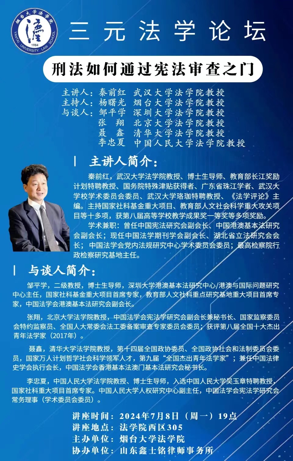 上一条:【讲座预告】三元法学论坛:中华人民共和国成立的宪法意义——从《共同纲领》到“五四宪法”