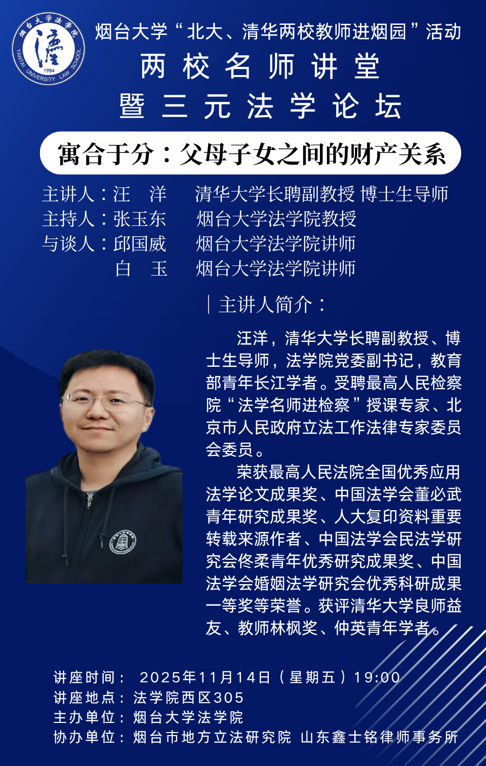 【讲座预告】两校名师讲堂暨三元法学论坛:寓合于分:父母子女之间的财产关系