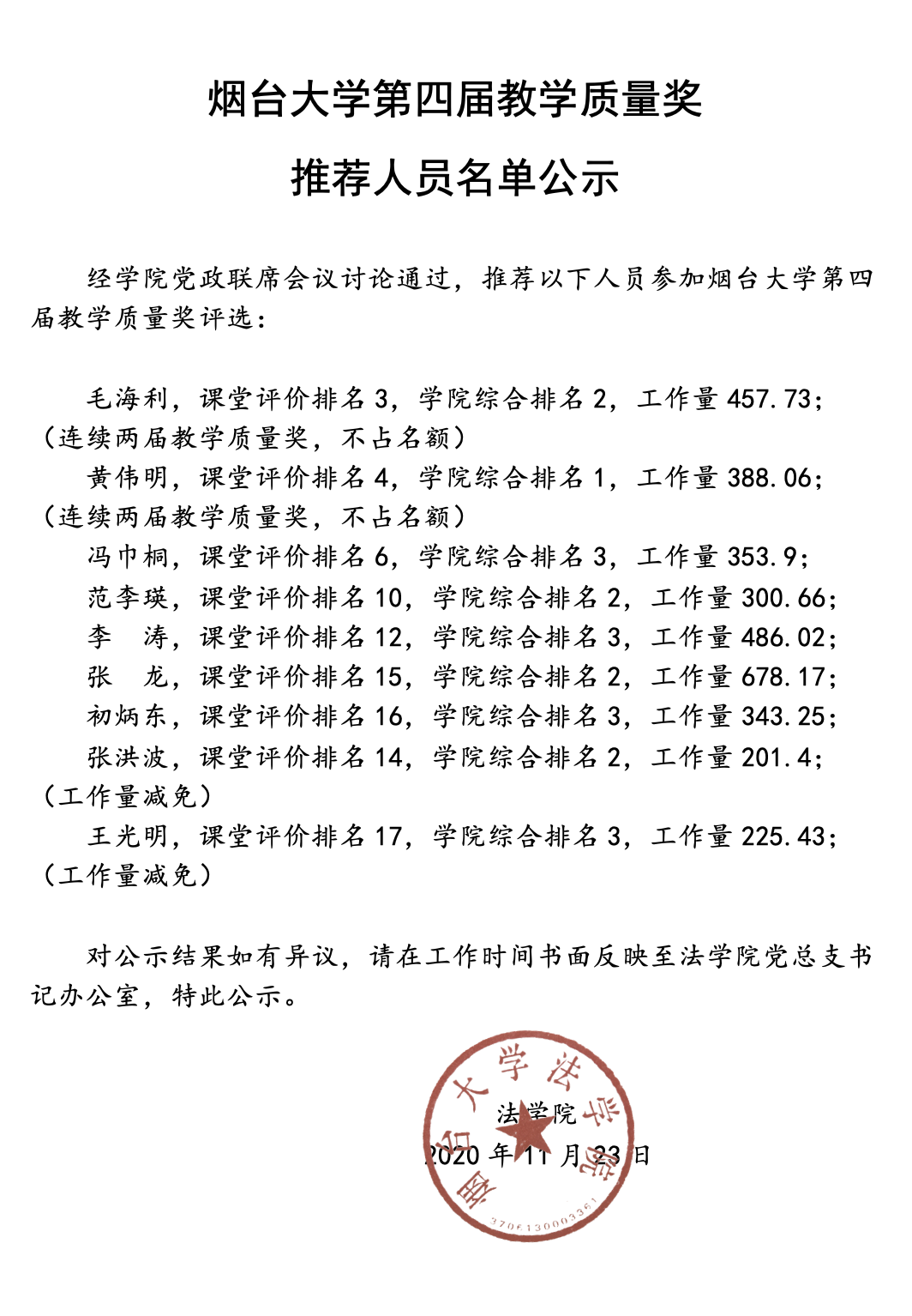 草榴社区 第四届教学质量奖推荐人员名单公示