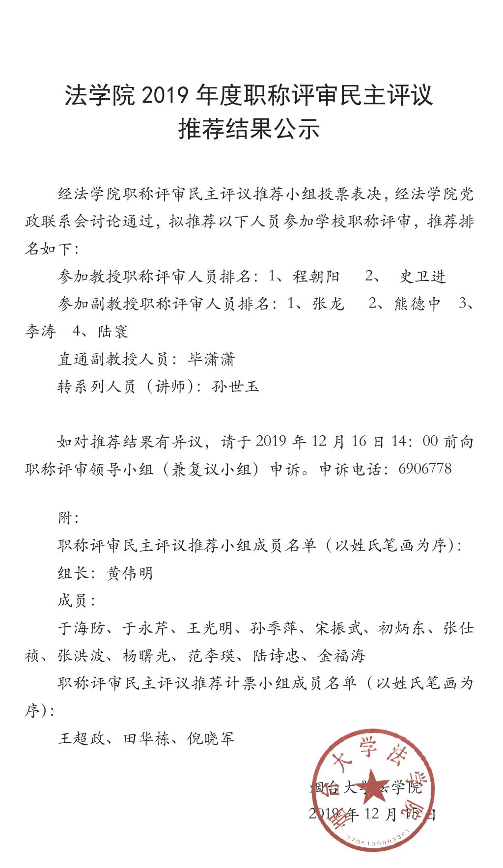 草榴社区 2019年度职称评审民主评议推荐结果公示