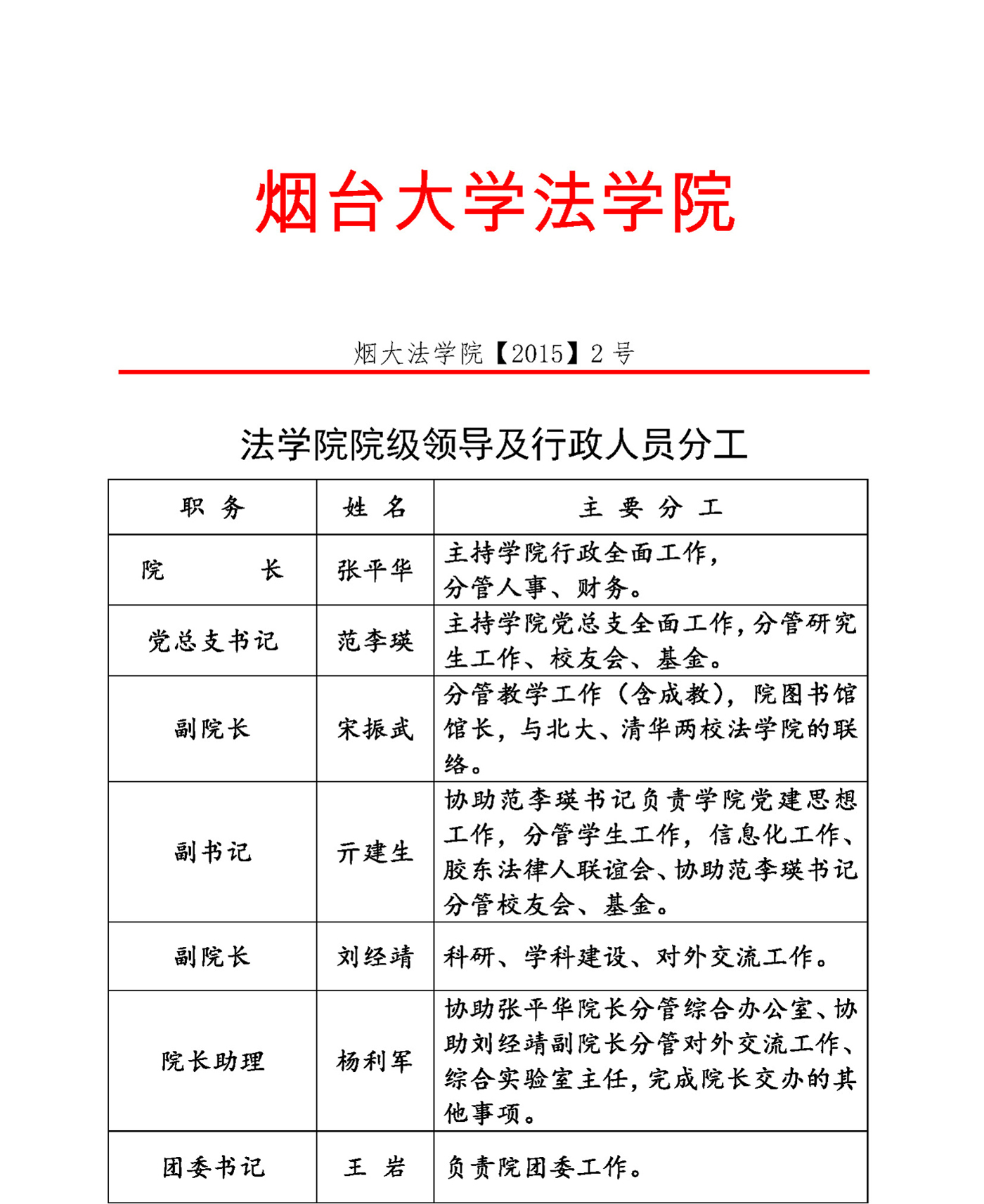 烟大草榴社区 【2015】2号关于调整草榴社区 院级领导和行政人员分工的通知