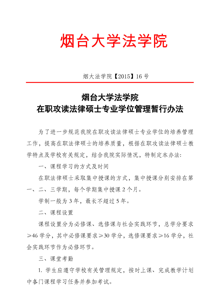 烟大草榴社区 【2015】16号草榴社区 在职攻读法律硕士专业学位管理暂行办法