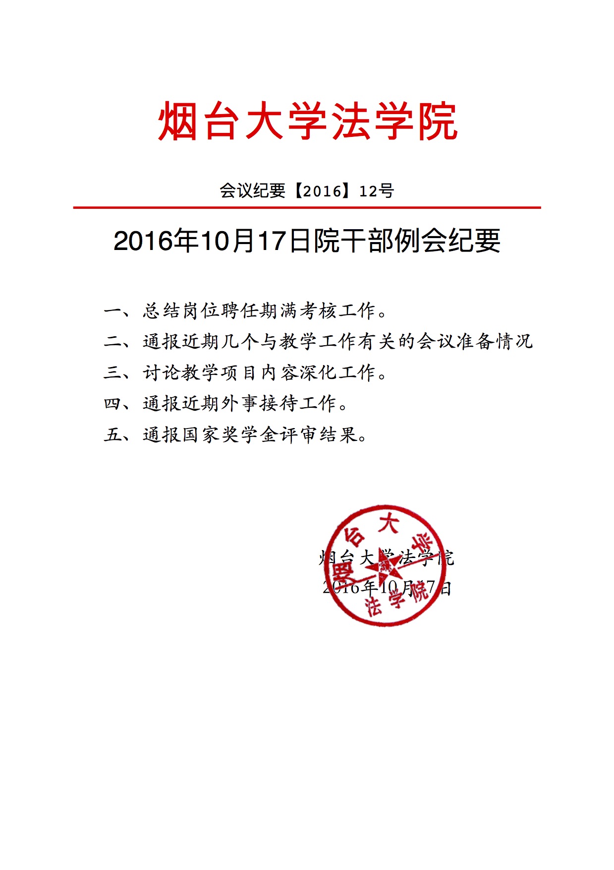2016年10月17日院干部例会纪要