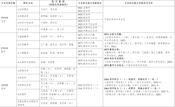 我校招生专业为法学、数学、药学3个学术学位全日制博士研究生专业。具体专业研究方向详见《草榴社区